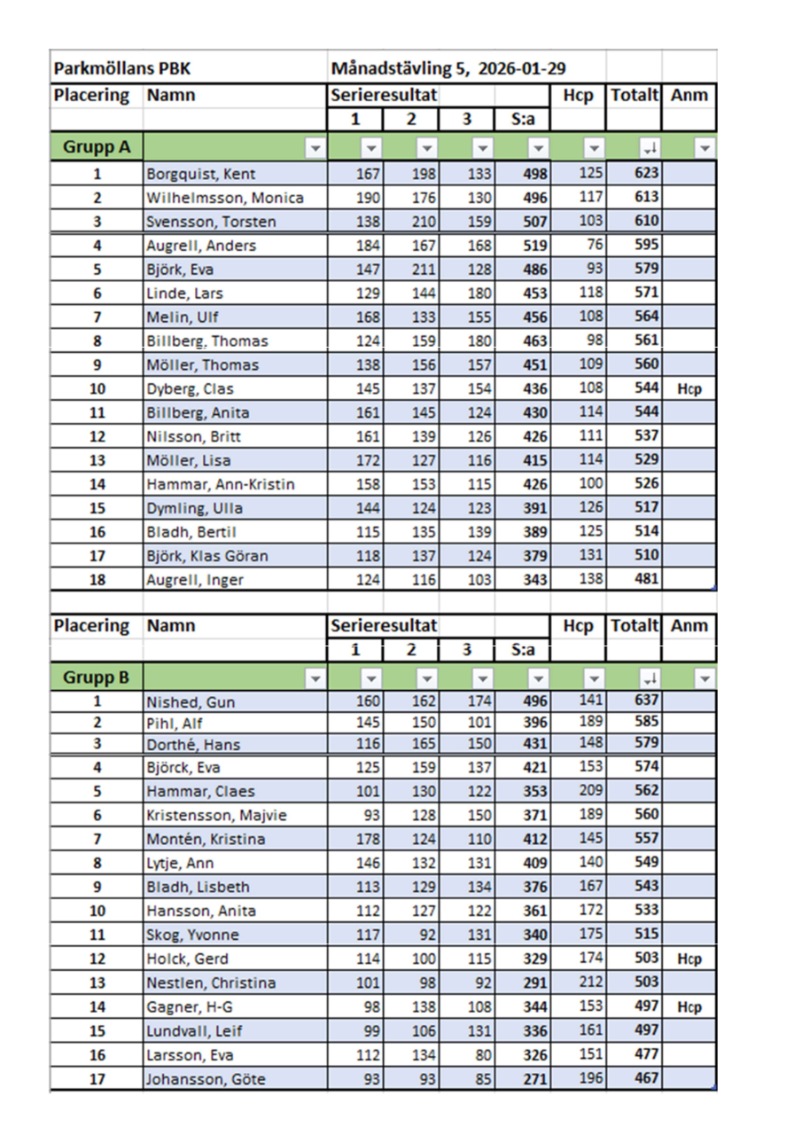 | 1 | Anders Augrell | 234 | 157 | 211 | 602 | 59 | 661 | ||