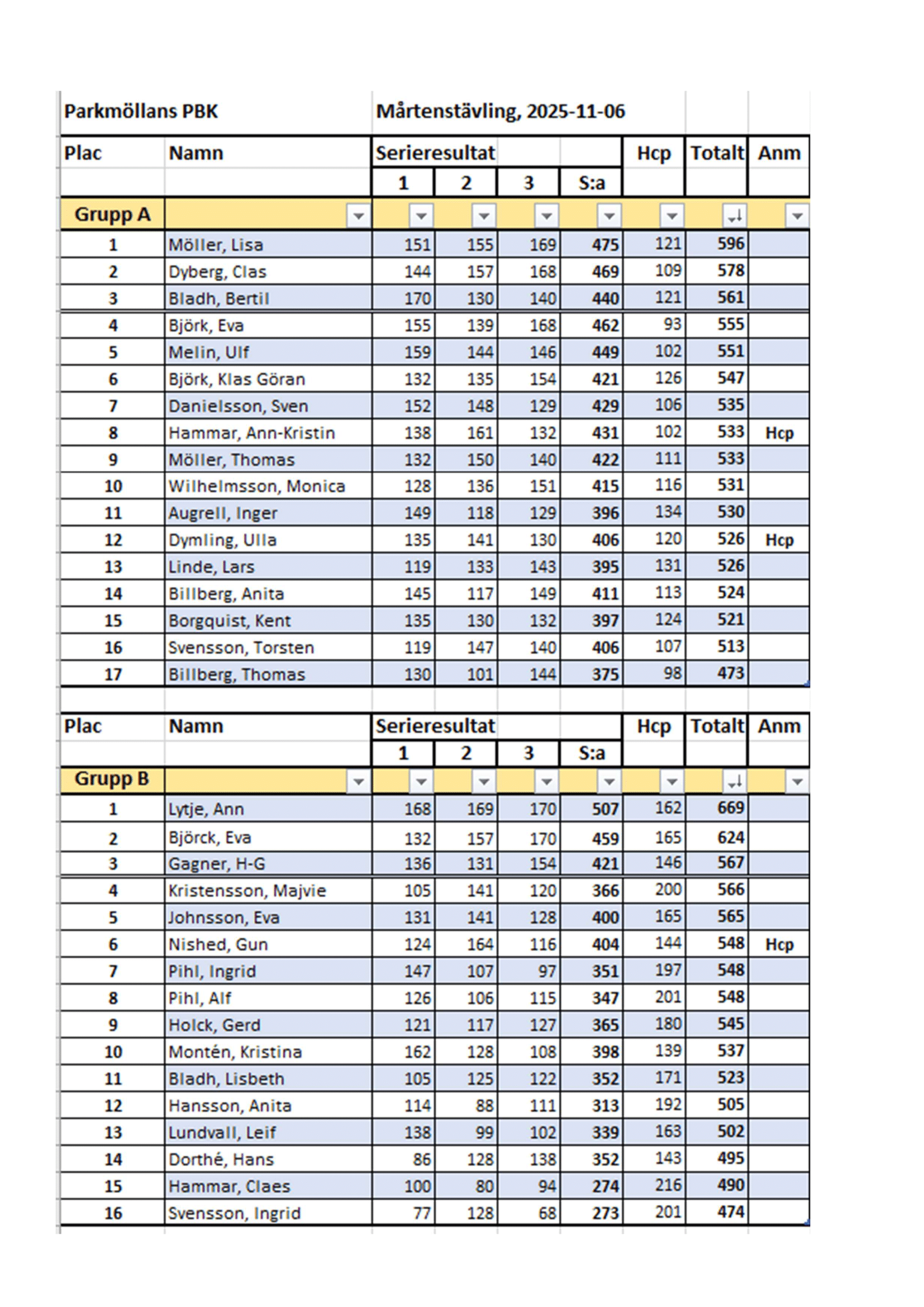 | Plac | Namn | Serie 1 | Serie 2 | Serie 3 | Summa | Handicap | Totalt | Anm | |||||||||||||||||||||||||||||||||||||||||||||||||||||||||||||||||||||||||||||||||||||||||||||||||||||||||||||||||||||||||||||||||||||||||||||||||||||||||||||||||||||||||||||||||||||||||||||||||||||||||||||||||||||||||||||||||||||||||||||||||||||||||||||||||||||||||||||||||||||||||||||||||||||||||||||||||||||||||||||||||||||||||||||||||||||||||||||||||||||||||||||||||||||||||||||||||||||||||||||||||||||||||||||||||||||||||||||||||||||||||||||||||||||||||||||||||||||||||||||||||||||||||||||||||||||||||||||||||||||||||||||||||||||||||||||