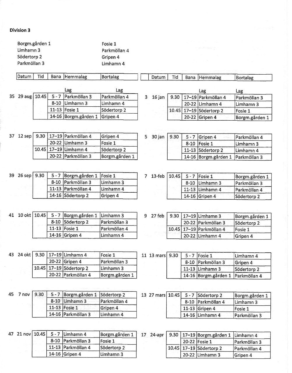 Startsida > PM-Bowling > Spelschema
